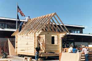 Logs have 1" slabs on top to nest against conventional roof systems.