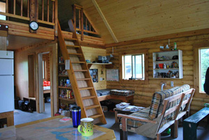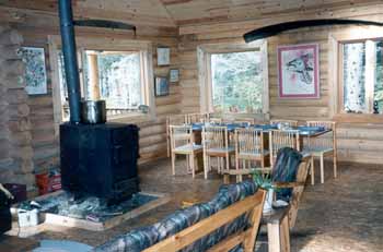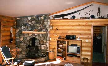 & hunting guests. The large barrel stove heats the lodge very well.