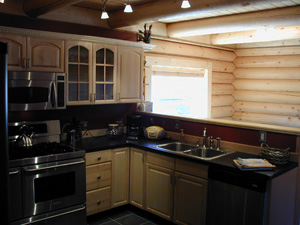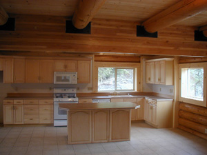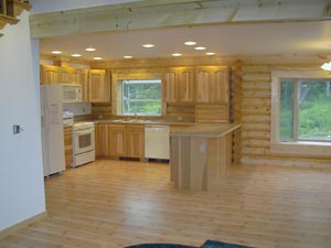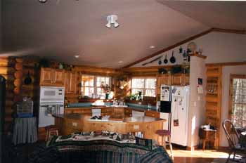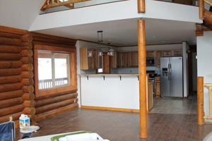 Open kitchen & dining areas compliment logs