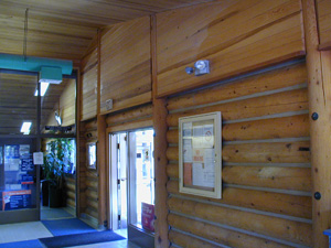 Logs "Authentic" half log siding is used to accent in gathering areas without