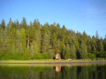 cabin at the Kenai Lake bridge was created to accent the natural surroundings.